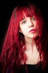 *As a teenager, she likes to dye her hair with different colors like red, pink and blue.