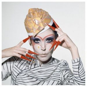 Peggy Moffitt is a former American model and actress. She is best known for her collaboration with fashion designer Rudi Gernreich and her husband photographer William Claxton. She developed a signature style, including false eyelashes and heavy eye makeup in the 1960s. Born Margaret Anne Moffitt on May 14, 1940 in Los Angeles, California, to Jack Moffitt, Peggy first began modeling in Paris in the 1950s. She was married photographer William Claxton in 1960. They had a son, Christopher. They remained married until Claxton’s death in October 2008.